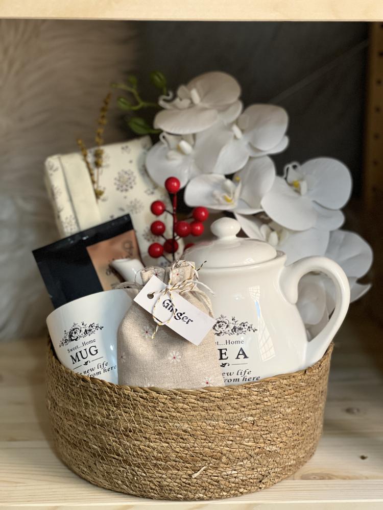 كيس قماشي داخله اظرف شاي او زنجبيل حبتين