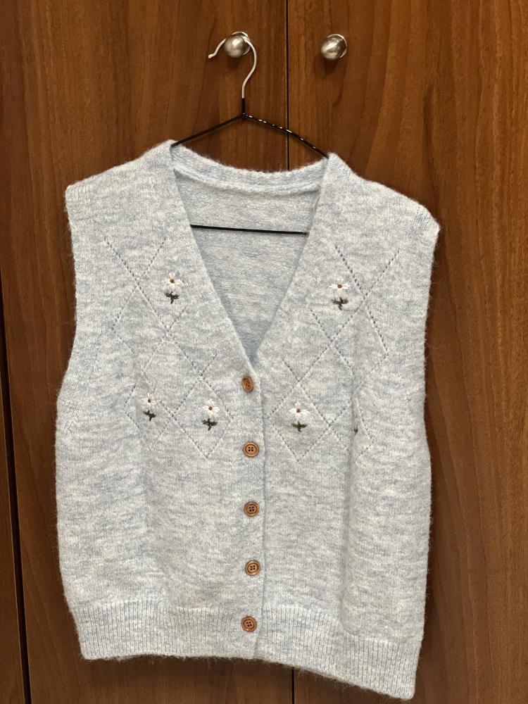سويتر صوف بحياكة فاخرة وأزرار فنتج وتطريز لطيف